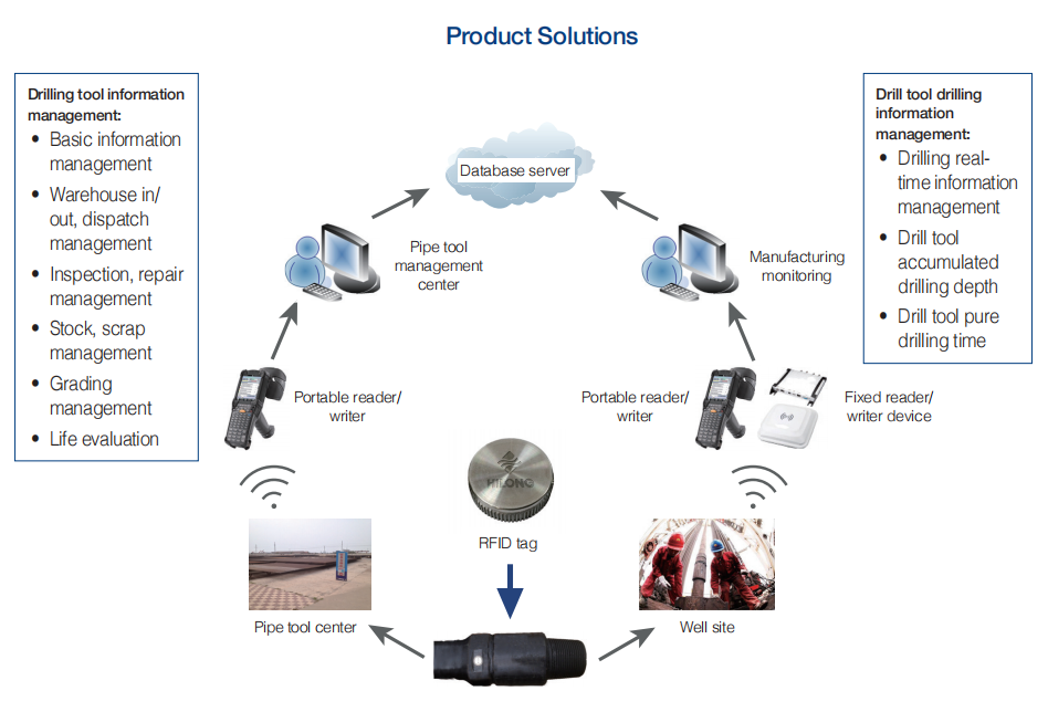 With Hilong's Electronic Tag Drilling Tool and IoT (Internet of Things) Management System, a radio frequency identification (RFID) tag is installed on each and every drilling tool product, and each tag acts as a unique "electronic ID card". The IoT Management System, combined with smart reader/writer devices, can efficiently and accurately realize full life cycle management of each drilling tool from production, warehouse in/out, allocation, use, maintenance, and testing to scrapping.