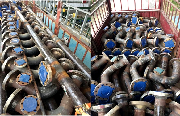 這批異形工件的內涂層共計480件,包括四種異形規格,由海隆旗下企業四川海隆石油技術有限公司(四川海?。┘庸ぶ谱?。為了達到KOC的生產認證許可要求,四川海隆在集團及管道技術與服務事業部支持下進行了生產工藝和生產裝備方面的技術攻關,于今年9月通過KOC的PQT全面質量審核認證,并簽訂首批合同。